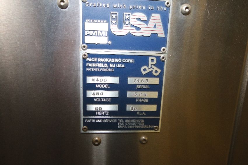 2011 Pace Omni-Line M400 Empty Bottle Unscrambler, S/N 2465, 480 V, 3 Phase, with S/S Hopper, M/N 200UFT, S/N 2466, 220 AC Volts, 3 Phase, Hopper Dims.: Aprox. 44" L x 38" W