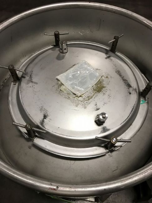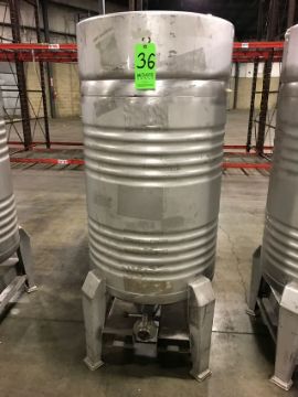 { Choice of lots: 34, 35, 36, 37, 38, 39 } Sharpsville 410 Liter S/S Container, with 14.9 PSI Working Pressure, with Top Manway, and 2.5" Outlet Valve