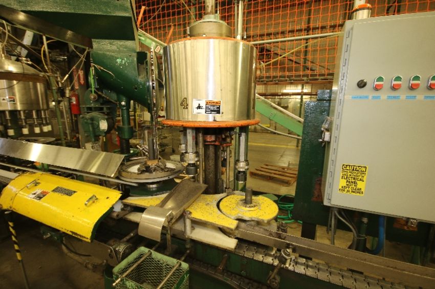 { Group of lots: 115, 116, 116A, 117, 118, 120, 121 } Consolidated Container 4-Head Screw Capper, M/N D-4-F, S/N 5177, with Hopper and Feed System, Includes Spare Parts