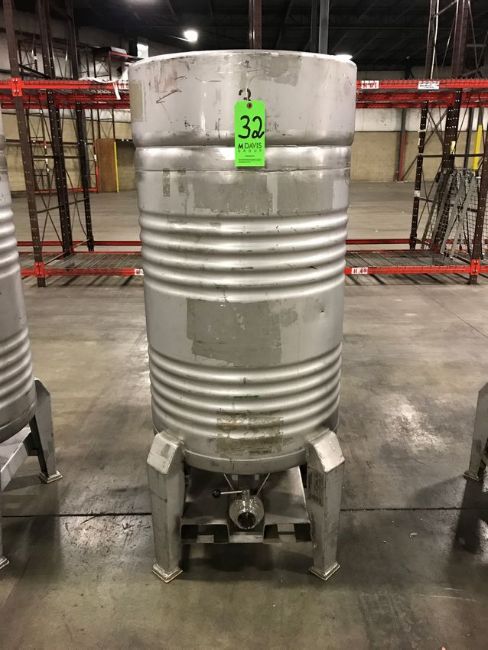 { Choice of lots: 31, 32 } Sharpsville 410 Liter S/S Container, with 14.9 PSI Working Pressure, with Top Manway, and 2.5" Outlet Valve