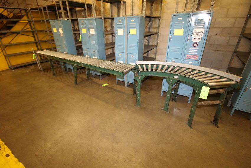 12' Long Roller Conveyor Section, Includes (1) Curve Section