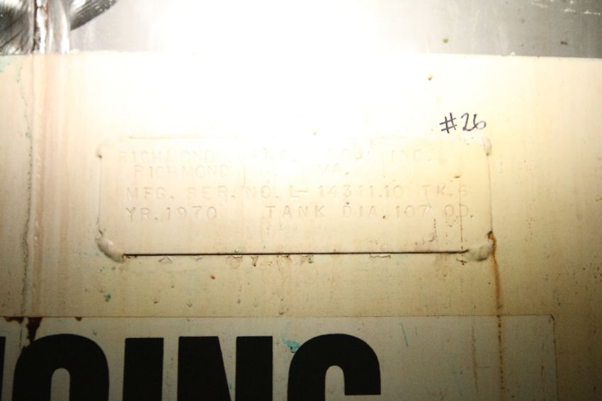 { Choice of lots: 198, 199 } Richmond 5,300 Gal. S/S Vertical Tank, S/N L-14311.10, Single-Wall, Dims.: 14' H x 115" Dia.(Tank 26)
