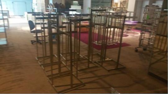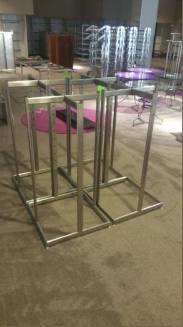 Chrome and Steel Four-sided Adjustable Height Clothing trees Rigging Cost: $15 There will be no rigging fees charged or collected on any hand carryable items removed by Saturday 7/29.