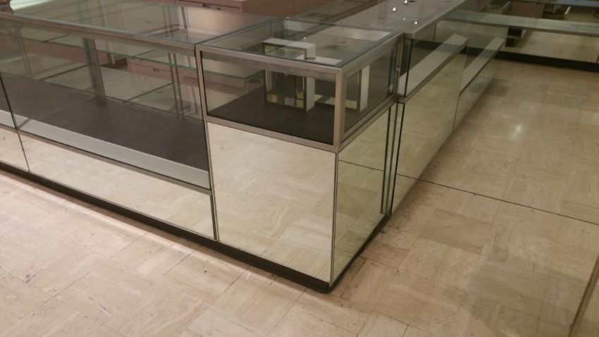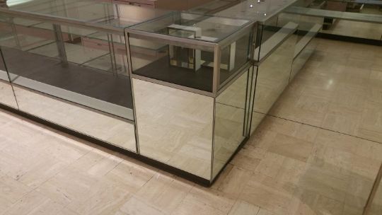 24"x24"x40" Mirrored on all side Glass Display Case Rigging Cost: $35 There will be no rigging fees charged or collected on any hand carryable items removed by Saturday 7/29.