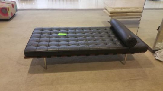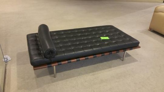 H 25" W 39" D 78" Seat H 15.5" Design Within Reach Barcelona Couch Designed by Ludwig Mies van der Rohe, produced by Knoll Rigging Cost: $10 There will be no rigging fees charged or collected on any hand carryable items removed by Saturday 7/29.