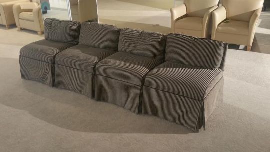 Gray and Black Striped Down Stuff Chairs Rigging Cost: $20 There will be no rigging fees charged or collected on any hand carryable items removed by Saturday 7/29.