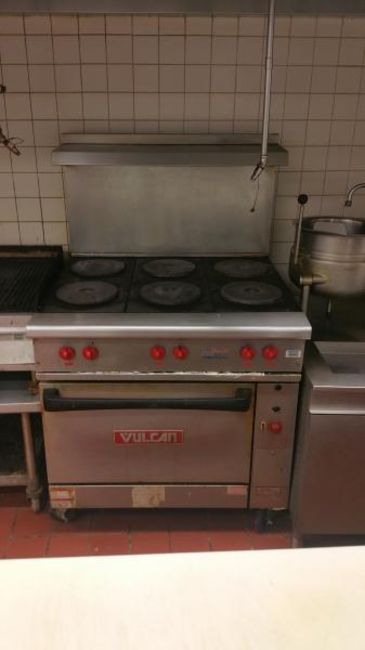 Vulcan 6 Burner Electric Range with Bakers Oven Rigging Cost: $100 There will be no rigging fees charged or collected on any hand carryable items removed by Saturday 7/29.