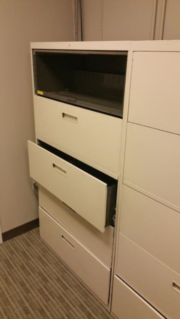 (3) 5 Compartment Beige Filing Cabinets and (1) Drawer plus water cooler and microwave Rigging Cost: $45 There will be no rigging fees charged or collected on any hand carryable items removed by Saturday 7/29.
