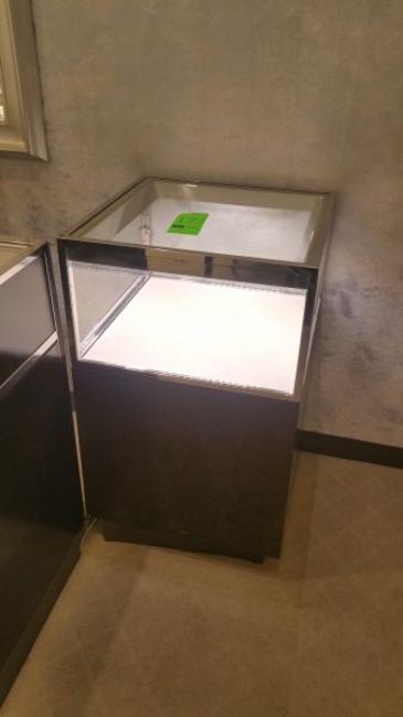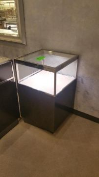 24""x24"x40" Chocolate Chrome and Glass Single Level display Case with Lighting Rigging Cost: $35 There will be no rigging fees charged or collected on any hand carryable items removed by Saturday 7/29.