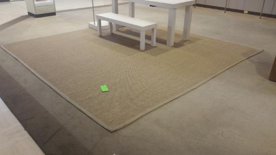 12'x12' Woven Rug with Gray Rim Rigging Cost: $10 There will be no rigging fees charged or collected on any hand carryable items removed by Saturday 7/29.