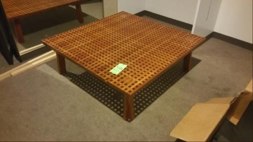 48.25"x16.5" Square Checkered End Tables Rigging Cost: $10 There will be no rigging fees charged or collected on any hand carryable items removed by Saturday 7/29.