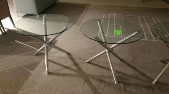 36" diameter x 29.5"H Glass and Chrome Round Table Rigging Cost: $10 There will be no rigging fees charged or collected on any hand carryable items removed by Saturday 7/29.