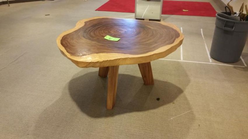 ~5' Round Live Edge 3 legged Black Walnut Table Rigging Cost: $25 There will be no rigging fees charged or collected on any hand carryable items removed by Saturday 7/29.