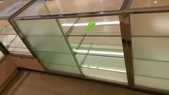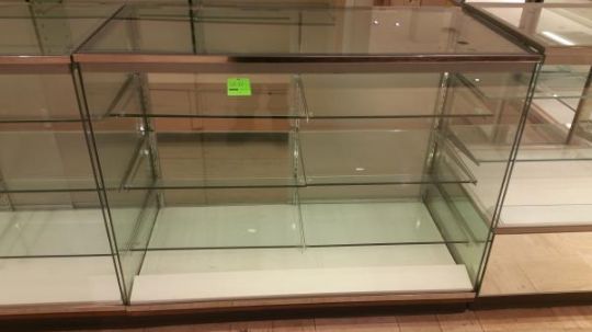 48” x 24” x 40” Chrome and Glass Display Cabinet with (3) Glass Shelves Rigging Cost: $55 There will be no rigging fees charged or collected on any hand carryable items removed by Saturday 7/29.