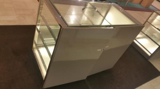 48” x 24” x 40” Chrome and Glass Display Cabinet with (2) Glass Shelves, and Lighting New in 2016 Rigging Cost: $45 There will be no rigging fees charged or collected on any hand carryable items removed by Saturday 7/29.