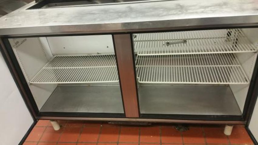 True Refrigeration 60"x30" Two Door Commercial Salad/Sandwich/Pizza Prep Refrigerator S/S Exterior White Aluminum Interior Single Door Top Access Rigging Cost: $50 There will be no rigging fees charged or collected on any hand carryable items removed by Saturday 7/29.
