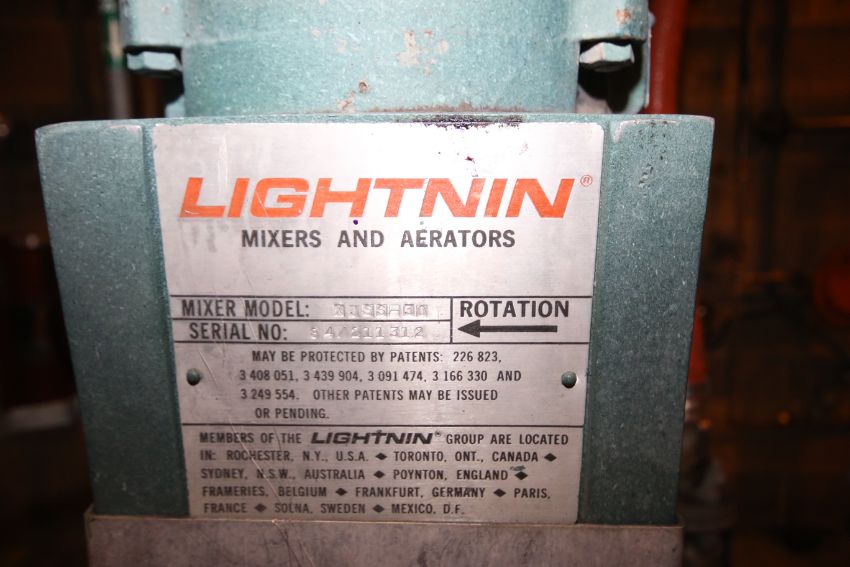 Aprox. 700 Gal. Dome-Top Dome-Bottom S/S Jacketed Tank with Thru Floor Design with .30 hp Lightnin Triple Prop Agitator, Mixer Model XJSS-30, S/N 84/211312, 290/1755 RPM, 460 V, Dimple Jacket, Related Valves (Work Tank) (Interior Dimensions Aprox. 64” H x 59” W), (NOTE: used in Cl. I Div. 1 Gp. D hazardous areas)