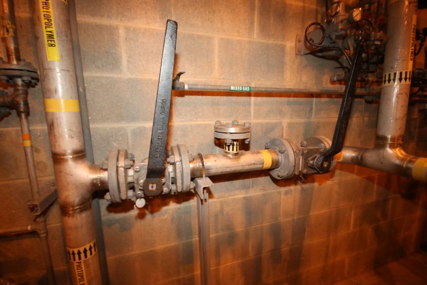 Installed S/S Piping Throughout 2nd Floor Blending Room includes Up to 3” S/S Pipe, Most 304 Type, Some Schedule 10 Piping includes Ball Valves and Other Related Valving, Other Instrumentation with Gas Meters, Control Valves, Traps and Pressure Relief Valve/Vent (Only Includes S/S Piping – Does Not Include Any Installed Fixtures)