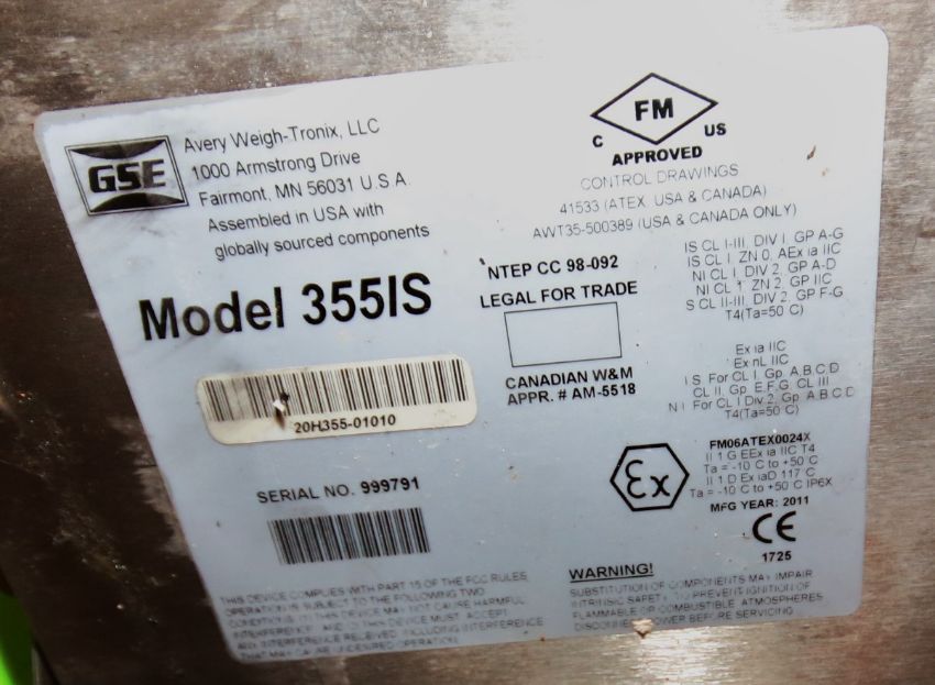 GSE Aprox. 5,000 lb. Capacity In-Ground Digital Platform Scale, Model 3551S, S/N 999791 with 48” x 50” Platform and Digital Read-Out (NOTE: Haz. Rating I.S. Cl. I - III, Div. 1, Grp. A - G) (NOTE: Hole Must Be Covered When Removed)