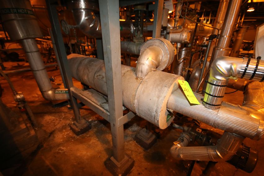 Aprox. 44” L x 12” W Shell and Tube Heat Exchangers, Mounted on Rack with (2) Fisher Control Valves and Dayton Booster Pump (Located 1st Floor Polymers Building)