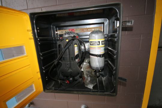 MSA Self-Contained Breathing Apparatuses with (2) Tanks Each, Mask and Enclosure ((2) Located Outside 1st Floor Polymers Building and (1) Located Outside Maintenance Shop)