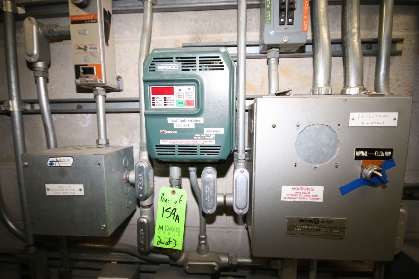 VFD’s for Blend Room includes (2) Reliance Electric 5 hp and (1) Baldor Vector Aprox. 5 hp, 460V (Located in Control Room)