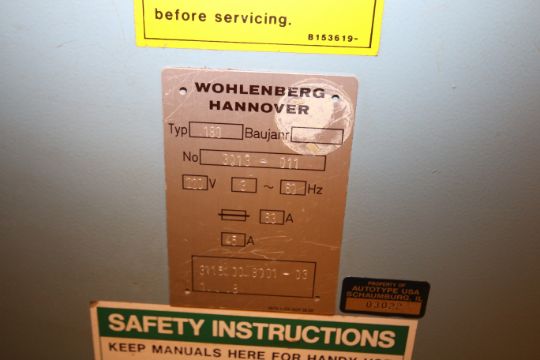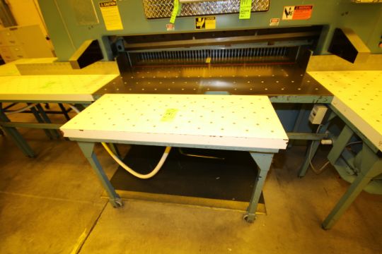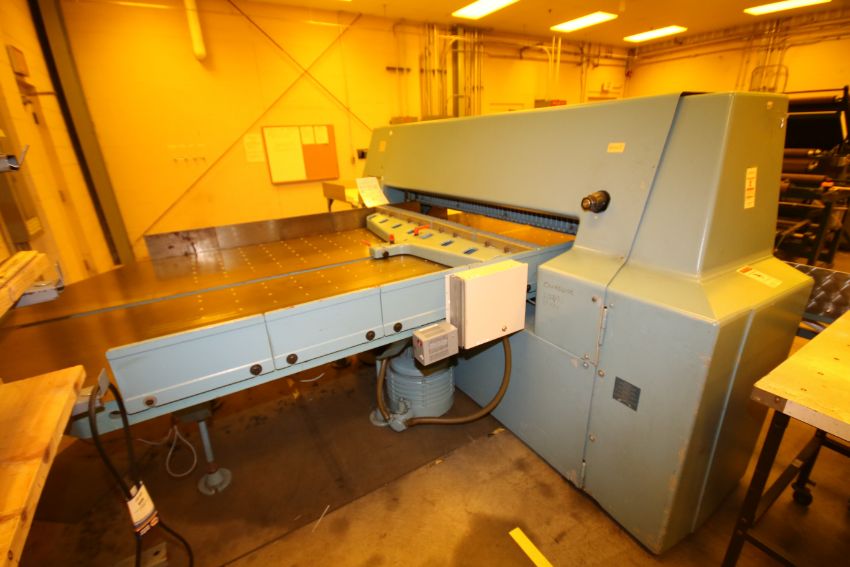 Wohlenberg 70” Guillotine Cutter, Model 180, S/N 3013-011 with Aprox. 101” L x 70” W Air Bed and Aprox. 102” L x 70-1/2” W Discharge Table, Light Safety Curtain and DigiKut Positioner Programmable Controls, 220 V includes (1) Crate with (3) Blades