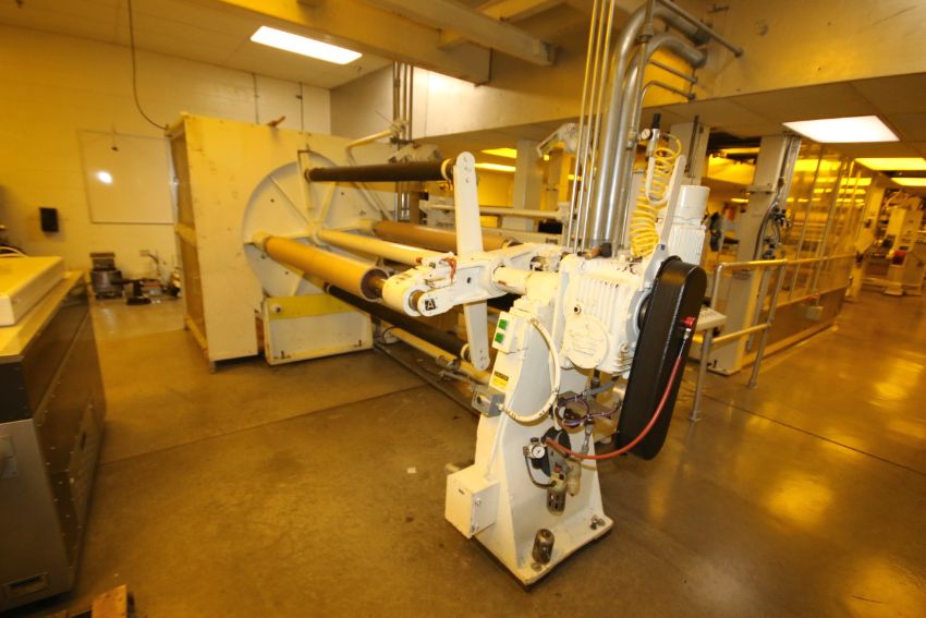 Black Clawson Turret, Model 20, S/N 303D283534 with 54” Rotate, 4-Roll 38” Centers, 69” L Rolls with Drives includes Roll Lifter, CM 2-Ton Electric Hoist, I-Beam and Stand