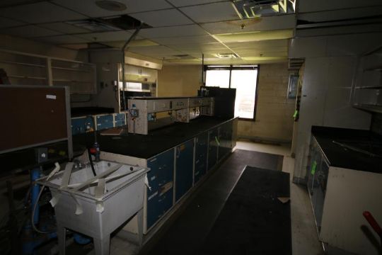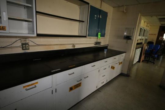 Lot of Assorted Lab Furniture in (2) Rooms, Includes (2) Lab Islands-14' L x 54" W and 160" L x 54" W, (9) Counter Tops 163" L x 29" W, 11" L x 30" W, 112" L x 29" W, Includes (3) Hood Systems, LOCATED IN BRIDGEVIEW, IL ***Removal: Items must be removed by July 21