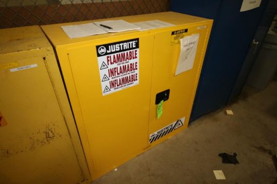 JustRite and Eagle Flammable Storage Cabinets, 30 Gal. Capacity, Overall Dims.: 43" L x 18" W x 44" H, with Additional JustRite 4 Gal. Flammable Storage Cabinet, Overall Dims.: 17" L x 17" W x 22" H (NOTE: Contents Not Included, LOCATED SOUTH PLAINFIELD, NJ