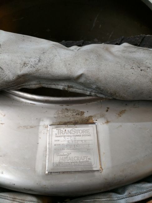 Custom Metalcraft Inc./TransStore Aprox. 130 Gal. S/S Transport Tank, Model 516035, S/N 54159-1 includes Agitator Blade and Insulation Blanket (Tank Dimensions Aprox. 36" Dia. X 30" H)