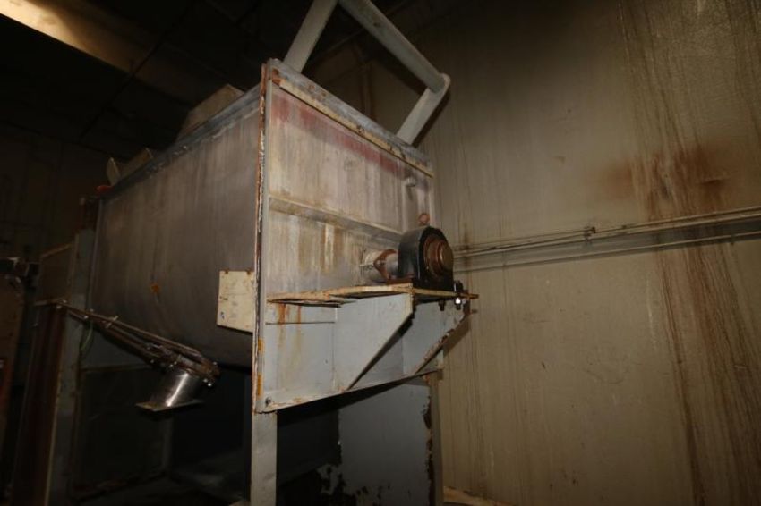 Aprox. 4,000 lb. S/S Paddle Mixer, with 50 hp Drive, 9" Dia. Discharge Outlet, Mix Chamber Dimensions: 95"L x 50" W x 46" Deep, with (8) Spare S/S Paddles, LOCATED IN BRIDGEVIEW, IL ***Removal: Items must be removed by July 21