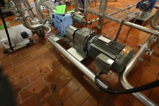 2013 SPX / WCB 3 HP Positive Displacement Pump, Model 040 U2, S/N 1000002884668, 2" Inlet x 2" Outlet, 1735 / 119 RPM, Mounted on S/S Skid