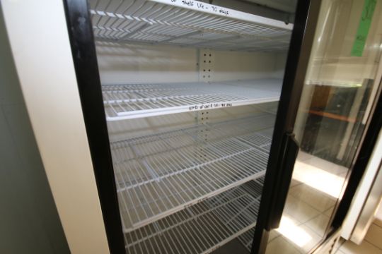 { Choice of lots: 307, 308 } Turbo Air Refrigerator, with Sliding Glass Door and Shelving, Overall Dims.: 56" L x 29" W x 78 1/2" H