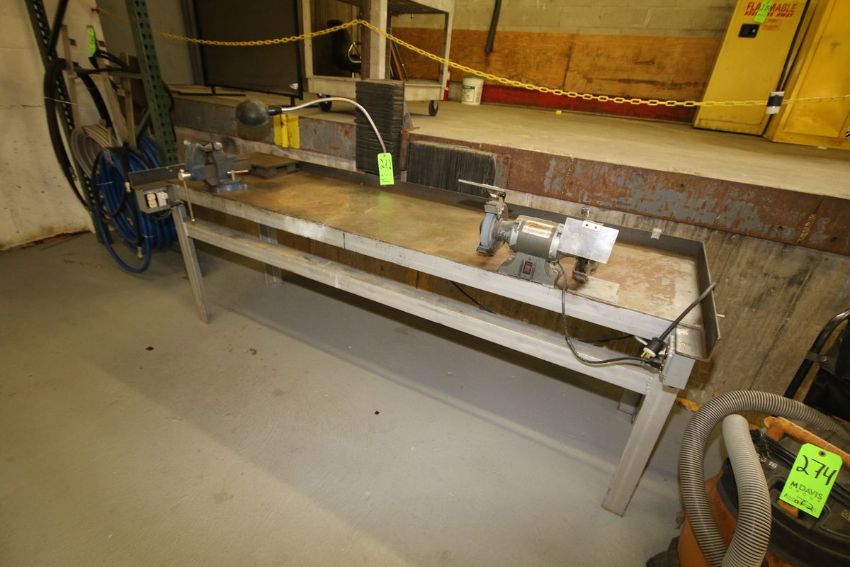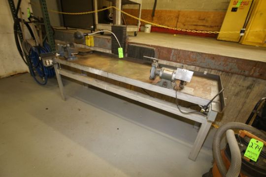 Shop Work Bench, Includes Double Edge Grinder, Includes Vise, (2) 110V Outlets, and Work Light, Dims.: 97" L x 31" W x 34" H