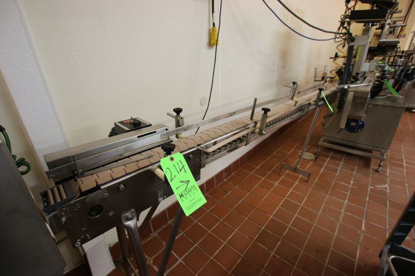 { Group of lots: 210, 211, 212, 214, 217, 217A, 217B, 217C } Mat Top Conveyor, Approx. 3" W x 92" L Equipped with Dayton 1 / 50-1 / 6 DC Speed Controller
