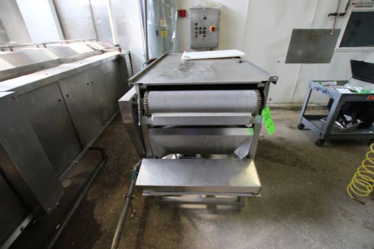 { Group of lots: 200, 201, 202 } S/S Draining Mat / Filtering Conveyor, Used to Drain Oil After Exiting Fryer Approx 25" W x 58" L