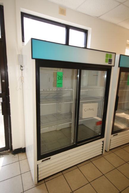{ Choice of lots: 307, 308 } Turbo Air Refrigerator, with Sliding Glass Door and Shelving, Overall Dims.: 56" L x 29" W x 78 1/2" H