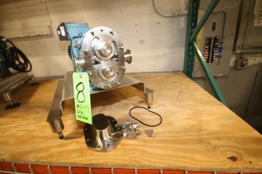 { Choice of lots: 8, 9 } } } Waukesha-Cherry Burrell 2 hp Positive Displacement Pump, Model 006, S/N 285104-01 with 1-1/2" Clamp Type S/S Head, SEW Drive 300 - 1800 RPM Motor and Onboard VFD, 460 V, 3 Phase, Mounted on S/S Frame