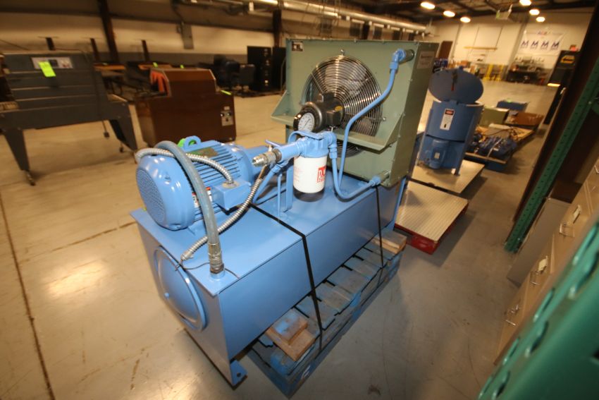 Aprox. 15 hp Hydraulic System, 1760 RPM, 230 - 460 V, 3 Phase Motor with Delta Pump, Model C49-DP with Aprox. 5 ft. L x 27" w x 24" H Reservoir and On-Board American Industrial Heat Exchanger, Model A0-30-1-392