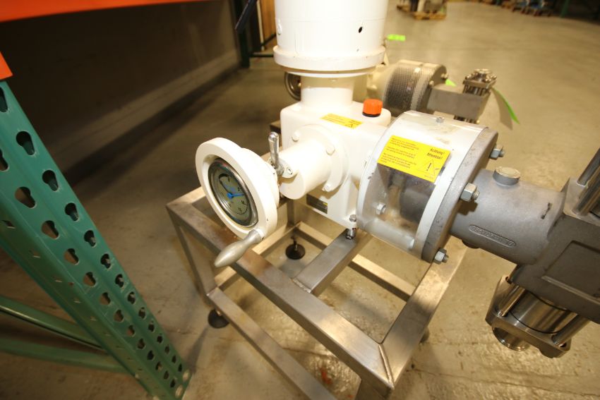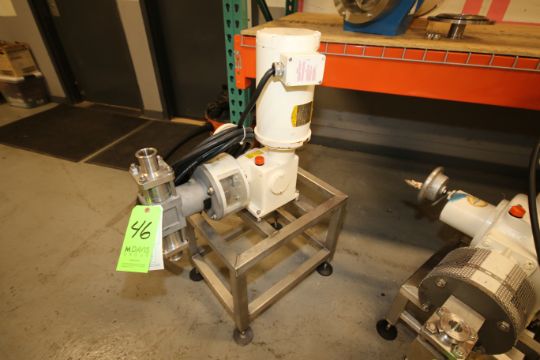 { Choice of lots: 46, 47, 48, 49, 50 } } } Bran Lubbe 1.5 hp Pump, Type N-K31, Machine #5101037 with 1-1/2" Clamp Type S/S Head and Baldor 1725 RPM Variable Speed Motor, 208-230/460 V, 3 Phase, Mounted on Stand