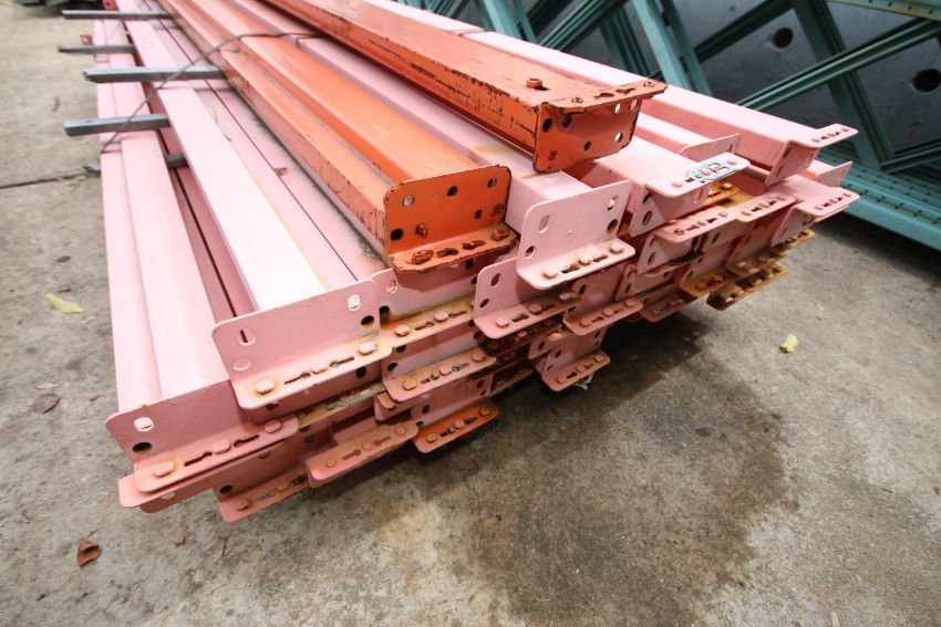 Interlake Pallet Racking Components including (8) 16 ft. H x 24" Deep Uprights and (41) 93" L Crossbraces (Enough to Create 7-Sections)