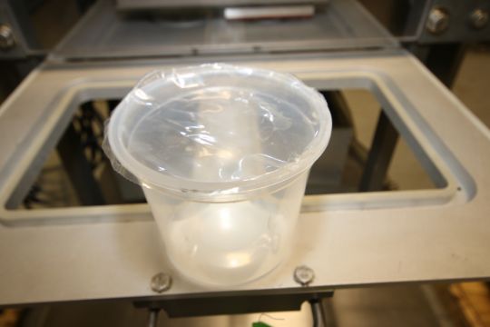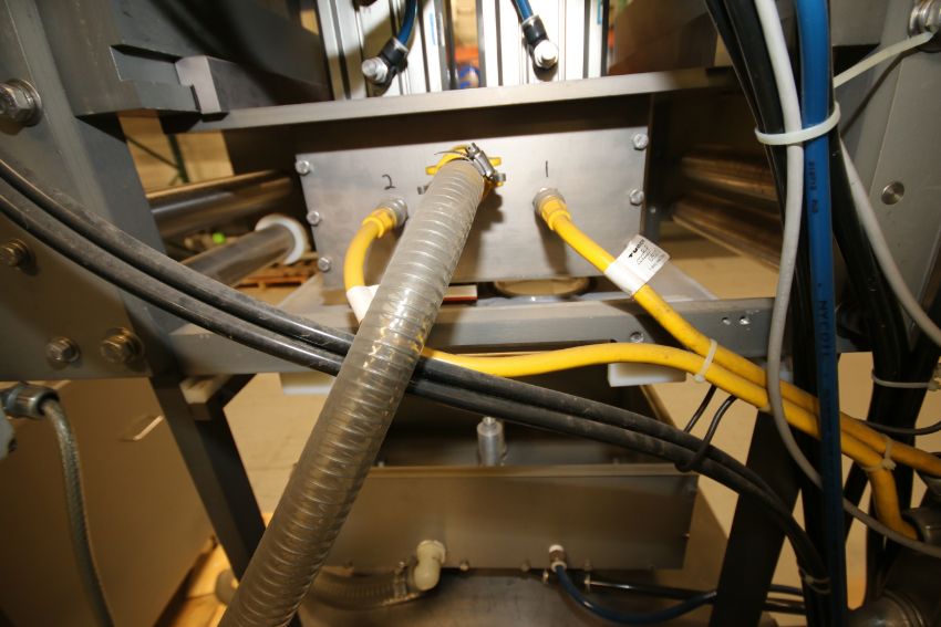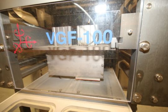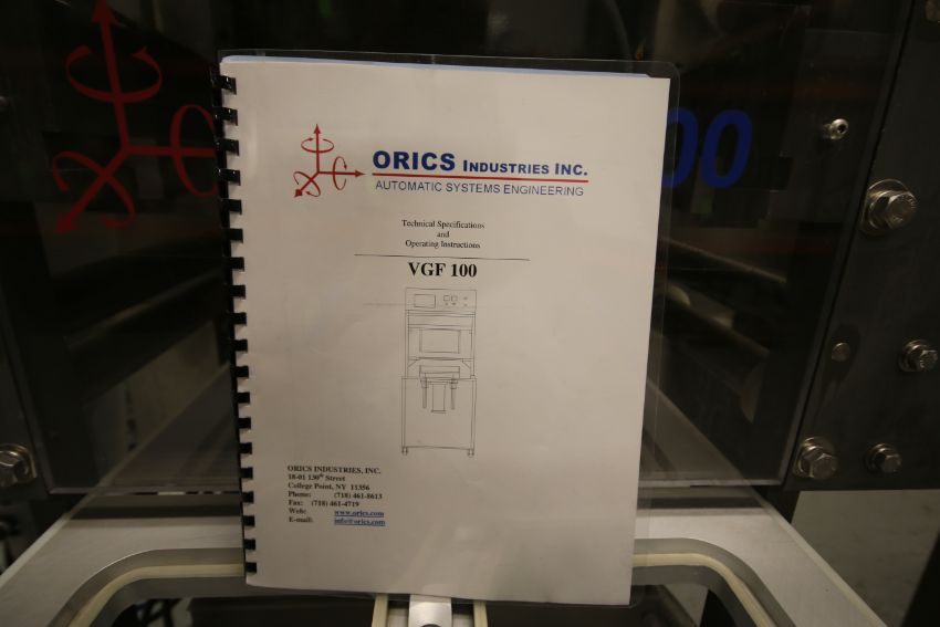 Orics 2-Station Manual Gas Flush Tray Sealer, Model VGF-100, Equipped with Aprox. 5-3/4" W x 7-7/8" L 2-Station Head, Utilizing Aprox. 4" 20 oz. Cup, Tamper Evident, 2 hp AC Vacuum Pump, Allen Bradley MicroLogix 1000 PLC Controls, (2) AcTech VFD's, 220 V, 3 Phase - Utilizes Up to 14" Film, Operates at 10-Trays Per Minute includes Aprox. 8-7/8" L x 6-7/8" W Spare Head on Pallet