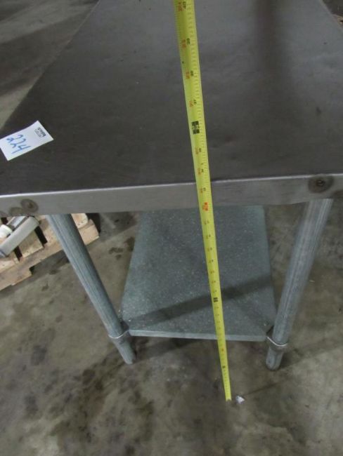 Stainless Steel Table with SS Legs and galvanized steel base shelving. Rounded edges on the length of 60" x 24" and on 32" legs (Rigging and loading fees included in the selling Price - palletizing extra $45)(Located in Iowa)***EUSA***