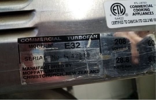 Moffet Covnection Oven, Model E32, S/N B42319, 208VAC 1PH 60Hz 28.8A 6.0kW (Located in Oregon)***RSFRM***