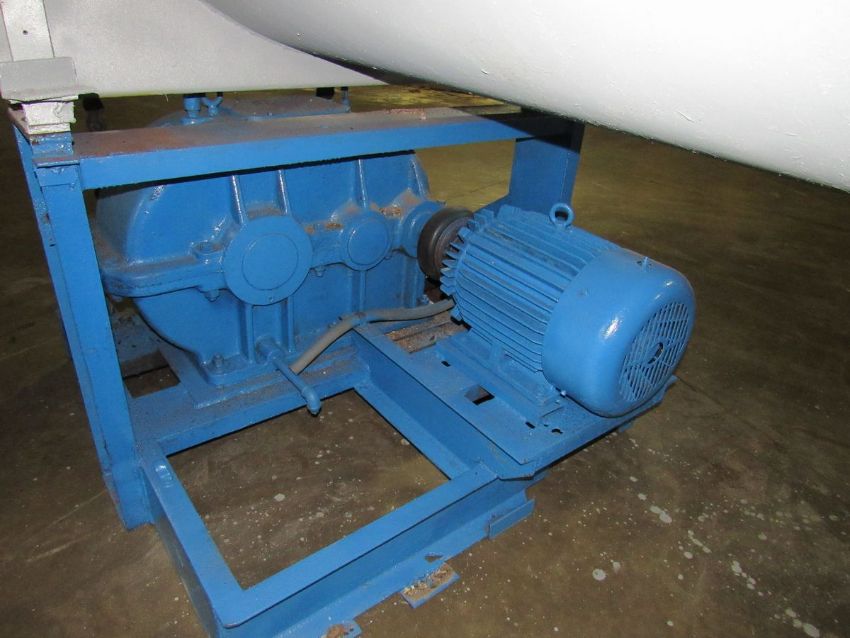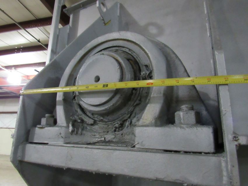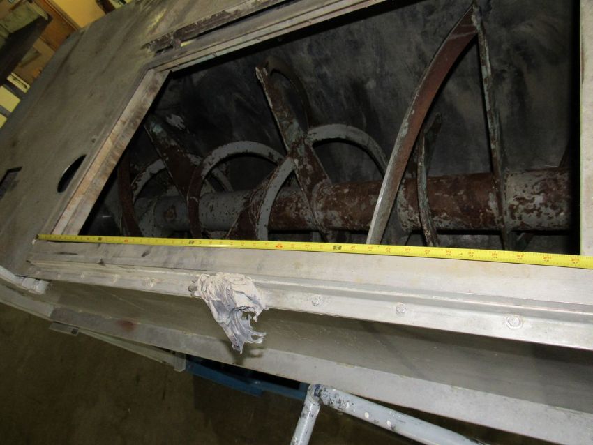 240 Cubic Feet Ribbon/Paddle blender with Stainless Steel lined barrel, 30HP Motor,, Foote Bros. Gear Box, 5" shaft, 10" bearings chain driven by 18" and 36" gears - safety guards removed for photos. Gear drive and rear legs can be separated for shipping (Rigging and loading fees$225.00)(Located in Iowa)***EUSA***