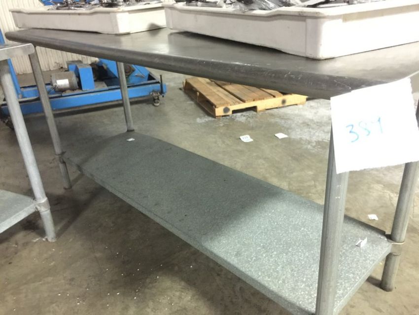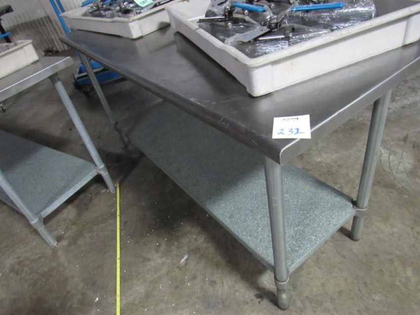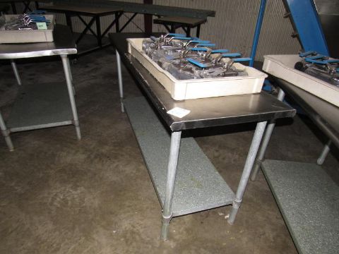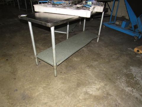 Stainless Steel Table with SS Legs and galvanized steel base shelving. Rounded edges on the length of 60" x 24" and on 32" legs (content not included) (Rigging and loading fees included in the selling Price - palletizing extra $45)(Located in Iowa)***EUSA***