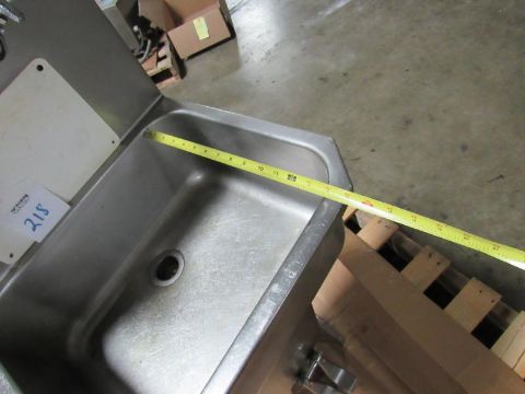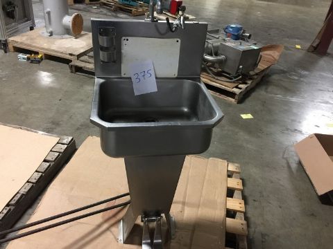Stainless Steel Sink; foot operated pedals for hot and cold 14" x 18" by 7" deep - 31" basin to floor; backsplash and soap bottle holder (Rigging and loading fees included in the selling Price - palletizing extra $25)(Located in Iowa)***EUSA***
