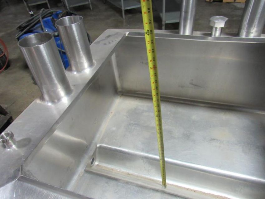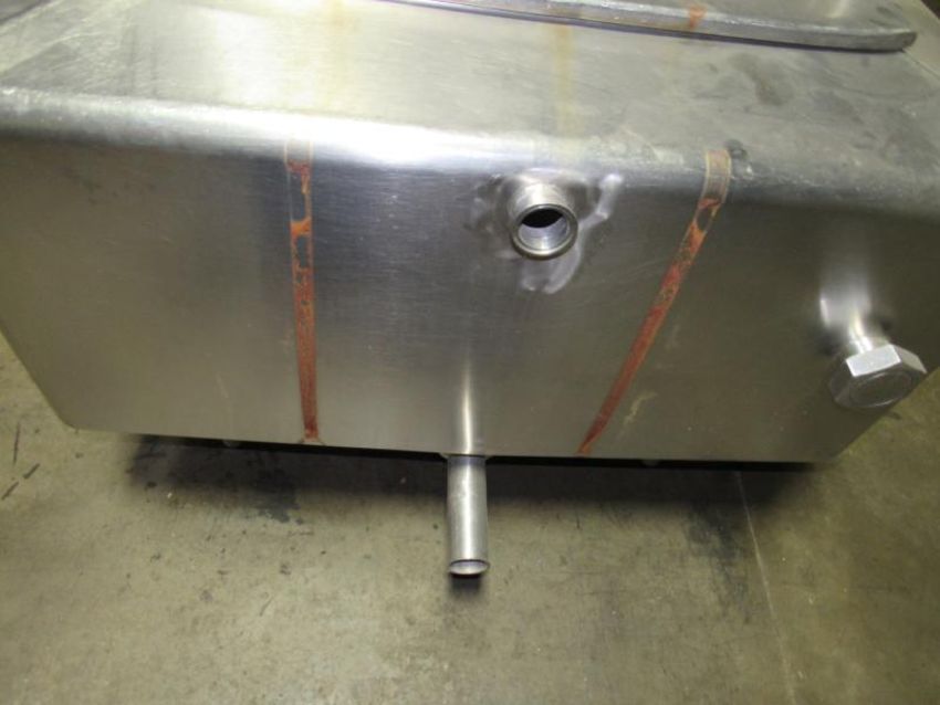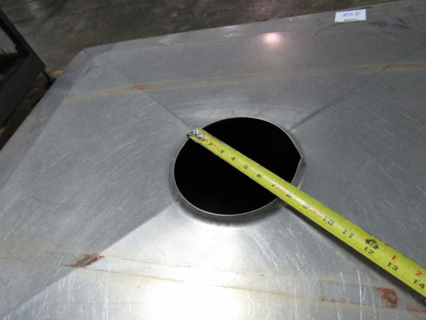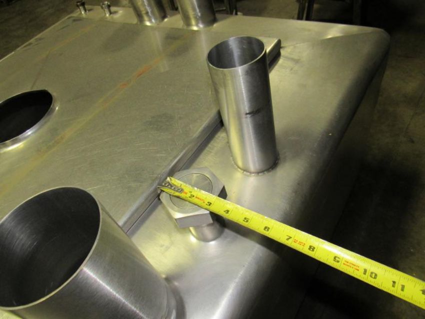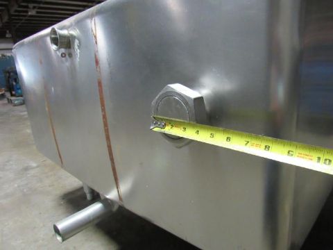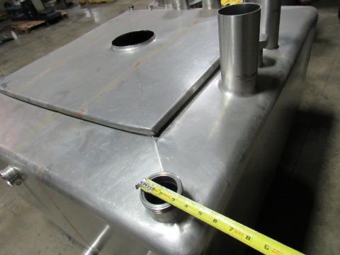 200 Gallon Stainless Steel Square Tank with removeable lid -several openings- 50" x 50" by 20" (Rigging and loading fees included in the selling Price - palletizing extra $85)(Located in Iowa)***EUSA***