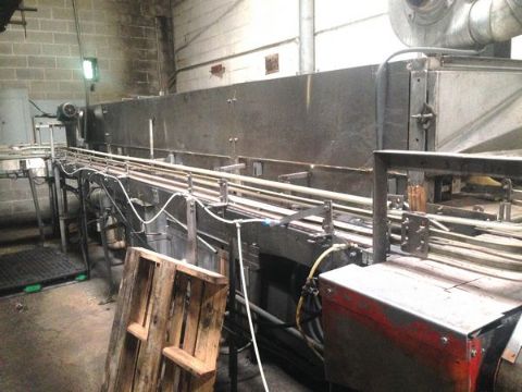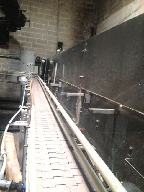 Southern Tool 4 x 20 Stainless Steel Warmer Tunnel (Located in North Carolina) ***FBEV*** Stainless Steel Construction, Plastic Intralox Bed measures 4 feet wide x 20 feet long, includes (1) centrifugal pump, air knife discharge, last ran 12oz. aluminum soft drink cans at 400 CPM